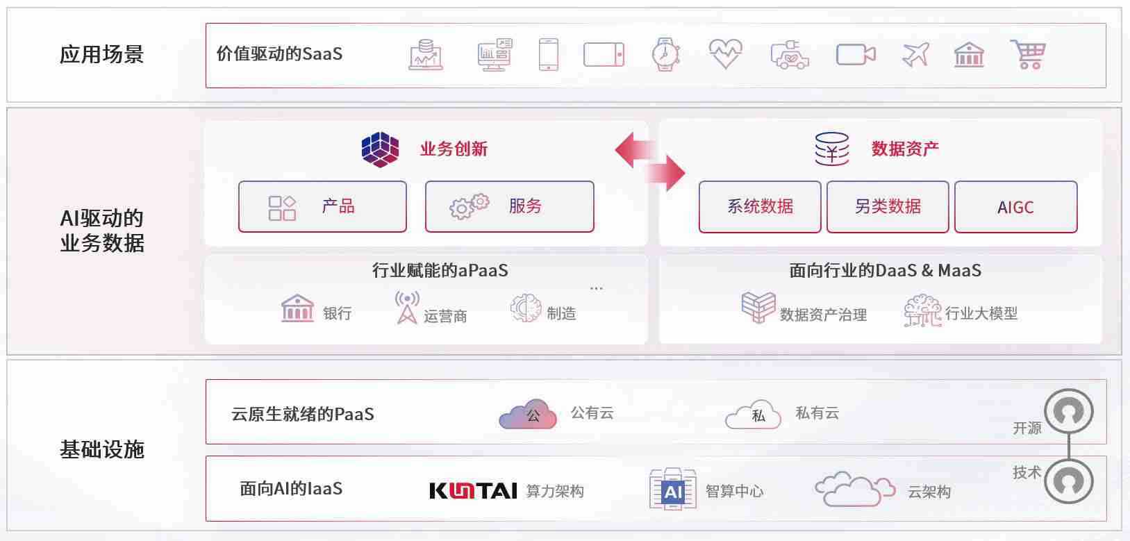 数字时代,,,围绕企业数字化转型的关键要素,,z6com尊龙凯时数码开创性的提出数云融合战略和技术体系框架,,着力在云原生、、、数字原生、、AI原生和信创产业上架构产品和服务能力,,为处在不同数字化转型阶段的快消零售、、、汽车、、金融、、、医疗、、、、政企、、、教育、、运营商等行业客户提供泛在的敏捷IT能力和融合的数据驱动能力,,,,构建跨界融合创新的数字业务场景和新业务模式,,,,助力企业级客户建立面向未来的核心能力和竞争优势,,,全面推动社会的数字化、、智能化转型升级。。