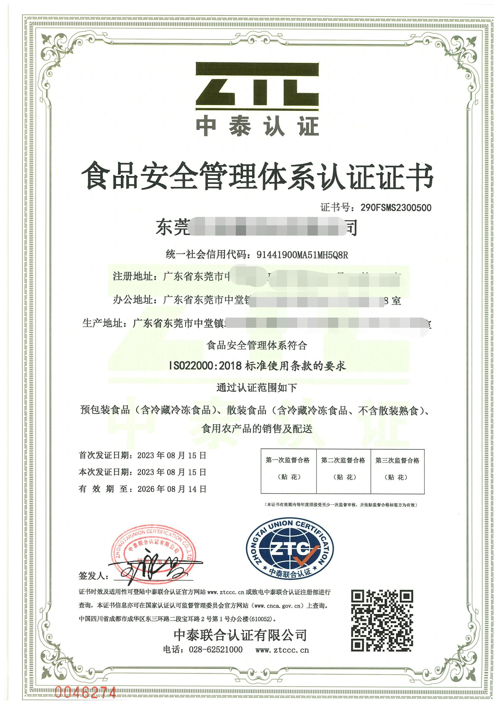 我公司(ISO22000食品安全管理体系认证价格透明-无二次收费